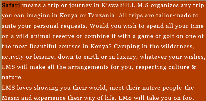 Loita Masai home page Parks and game reserves Tours and safaris Contact Loita masai safaris